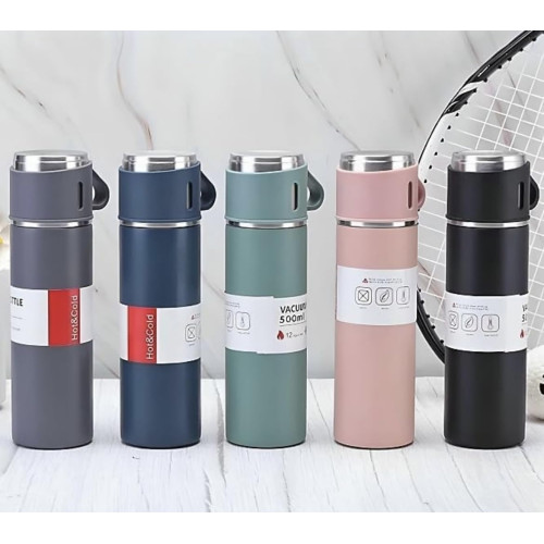 Hot Double Wall Stainless Steel Thermo 500ml Vacuum Insulated Bottle Water Flask Set With Two Cups Hot & Cold